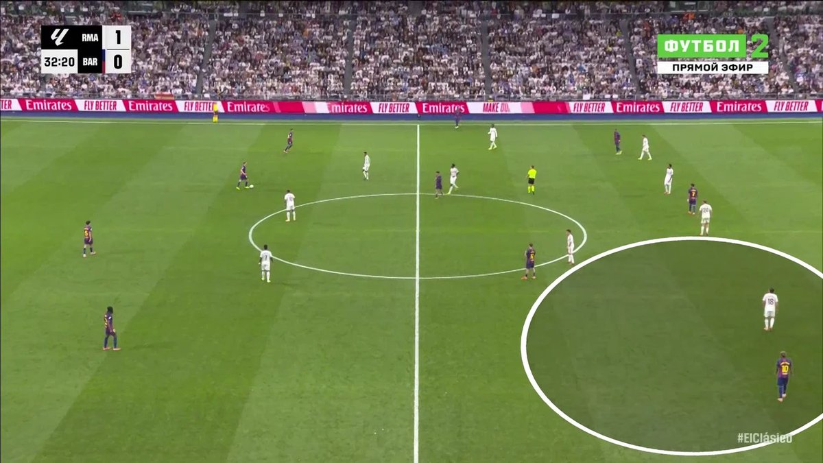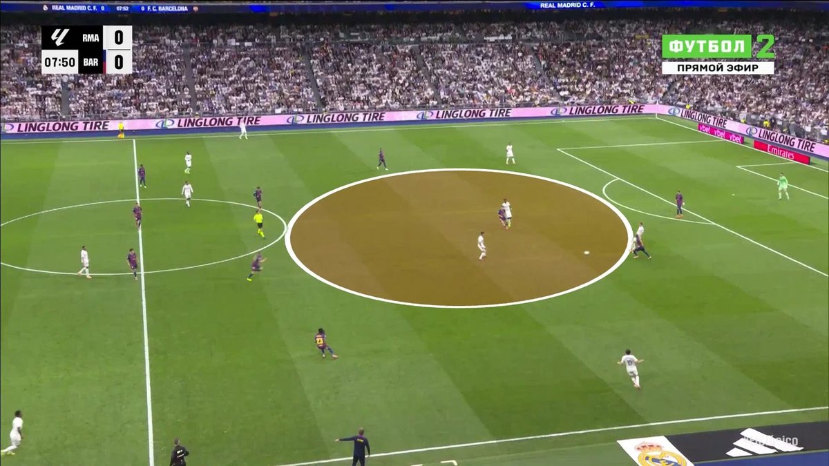 The second crucial tactical adjustment focused on containing Barcelona’s left-back Alex Balde. In the initial setup, Jude Bellingham tracked back to cover Balde’s forward runs in the defensive line.