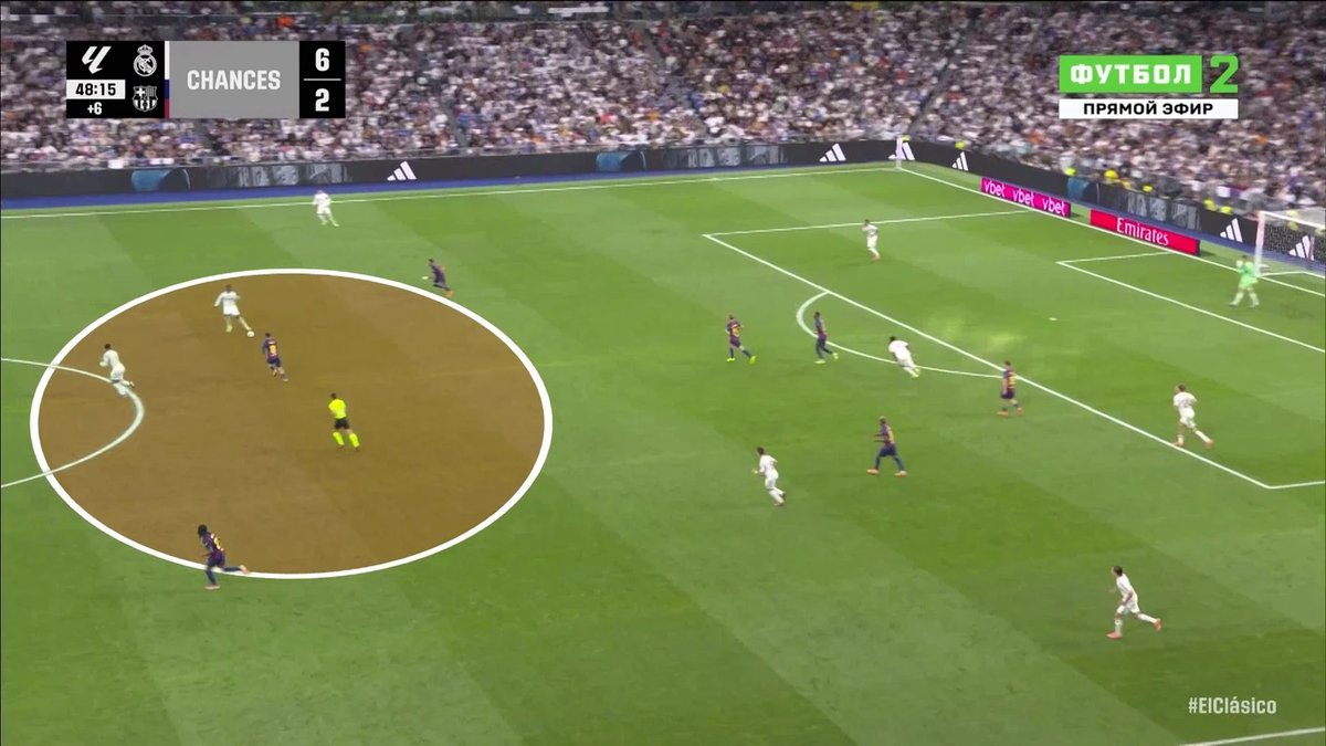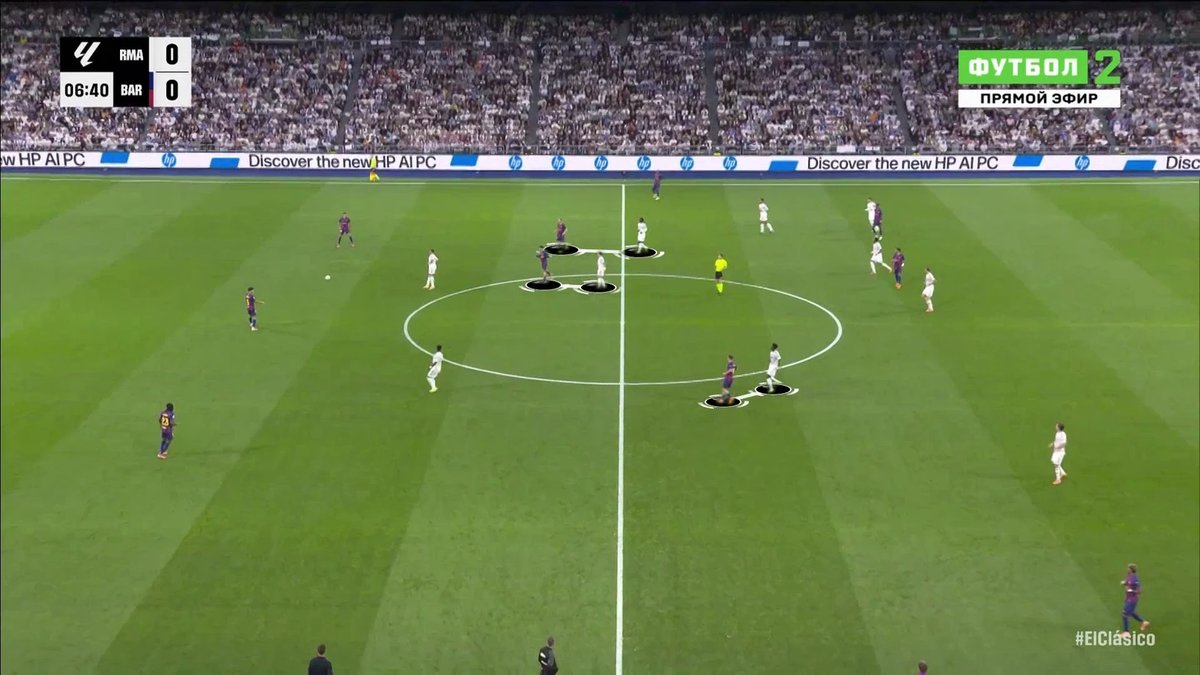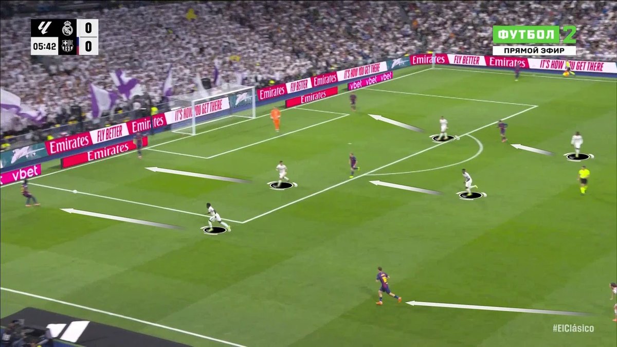 Although Real Madrid’s formation stretched at times, Barcelona struggled to build combinations through the central areas against Madrid’s disciplined marking.
